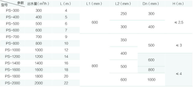 PS 型技術參數 PS type technical parameters